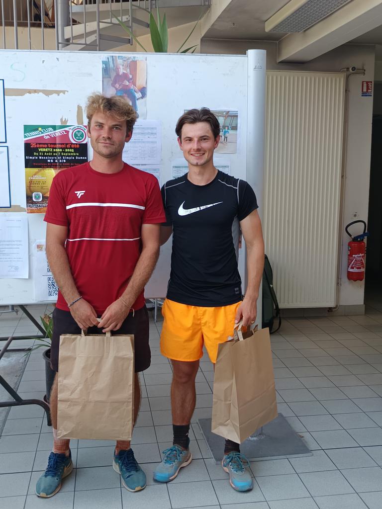 Sur la photographie finale : Jules DE LA BROSSE (15/4 Tc Lavallois dans le 53), à droite, bat Clovis COUDEVILLE (15/3 Tc Thorens dans le 74)